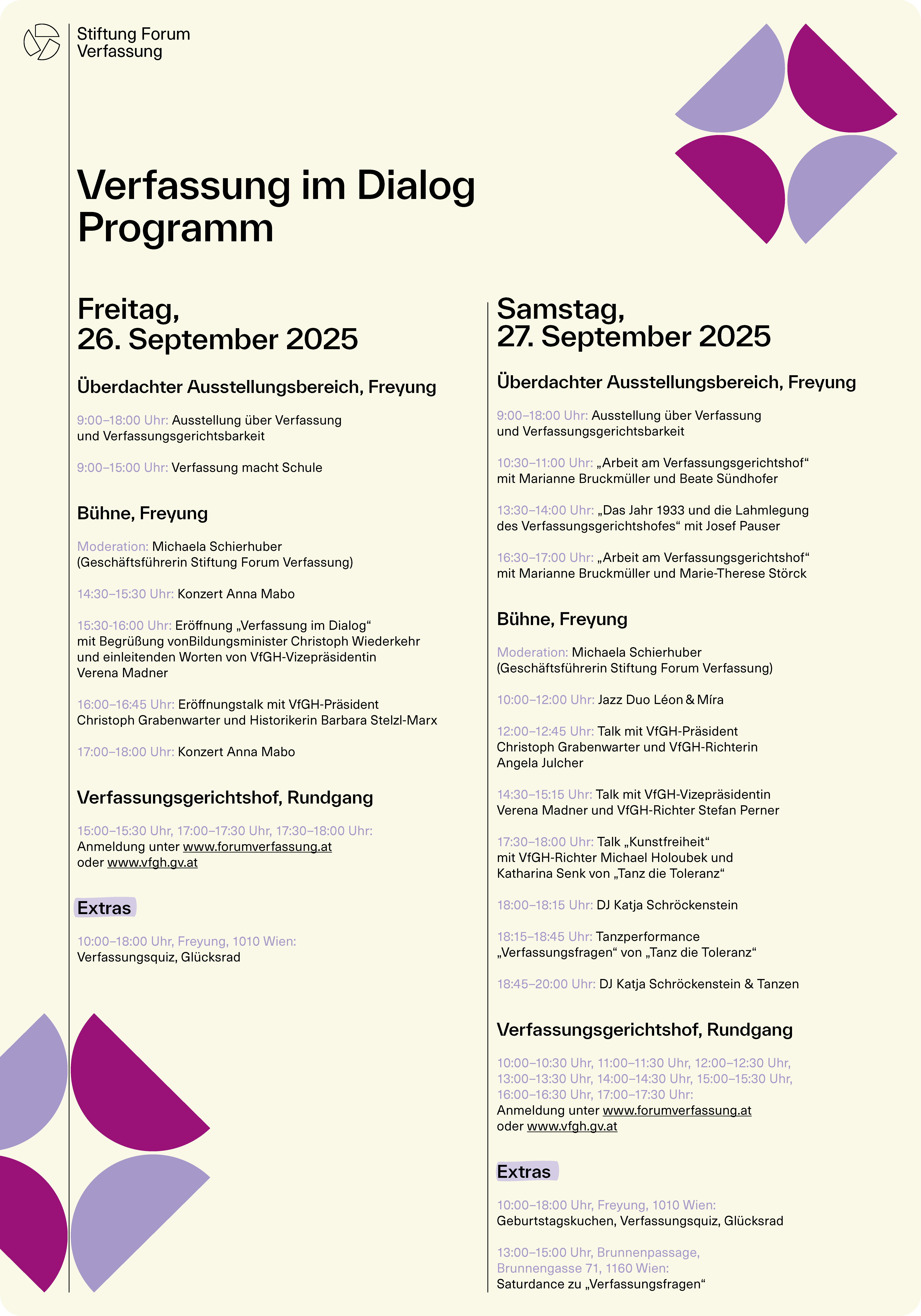Finden Sie hier das Programm für “Verfassung im Dialog” zum Download